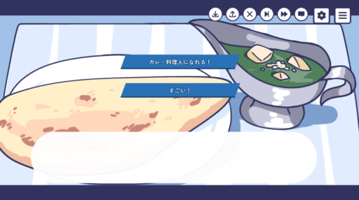 晩ごはんにカレーを7回頼むと、「カレー料理人になれる!」と「すごい!」という選択肢が出てきます。